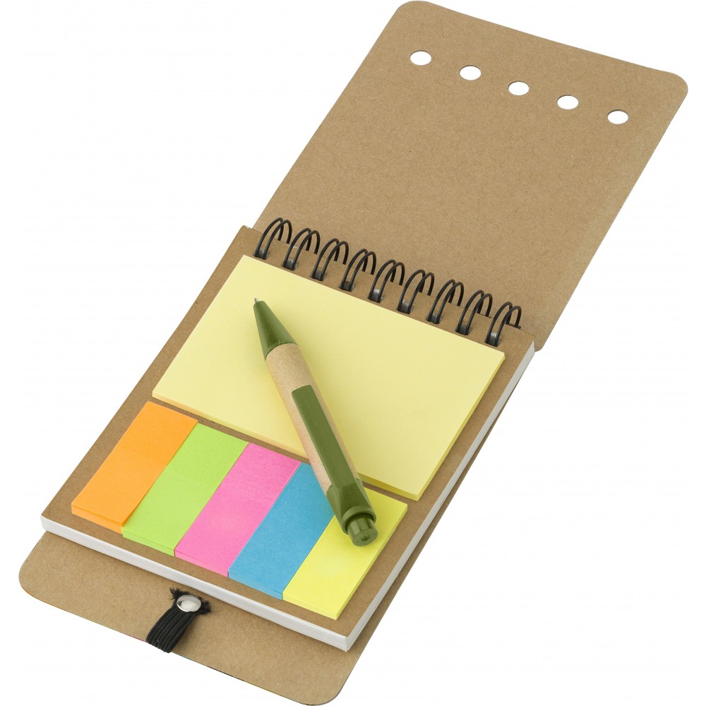 Spirálos jegyzettömbkészlet 150 db öntapadó jegyzetlappal, 60 vonalas lappal és golyóstollal (fekete tollbetéttel).