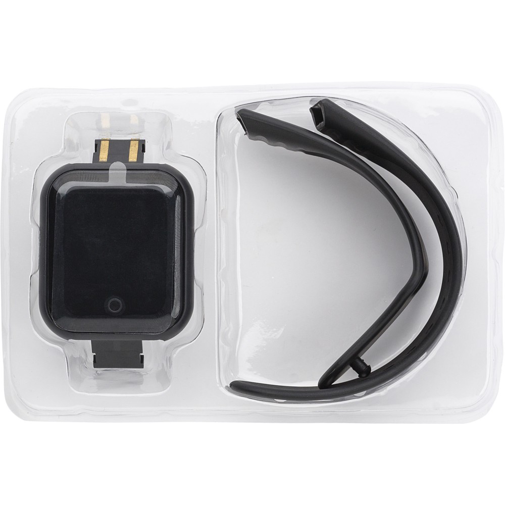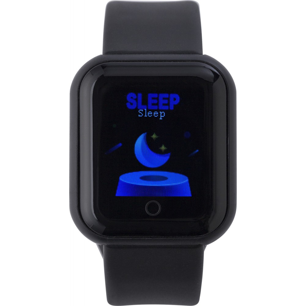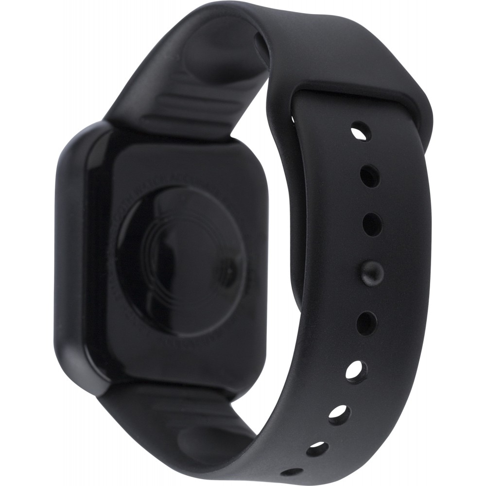 PET és PVC okosóra állítható karpánttal és vezeték nélküli technológiával. Funkciók: szívritmus, alvásfigyelő, oxigénmérés, üzenet emlékeztető, ivóvíz emlékeztető, edzés emlékeztető. USB töltő a csuklópántba rejtve.