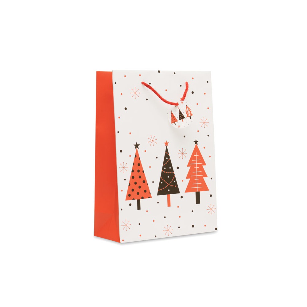 Nagyméretű, karácsonyi ajándéktasak papírból (30%-ban újrahasznosított), ajándék kísérő címkével. 150 g/m2 . FSC® -certified | FSC MIX, W5.3, FSC-C213206