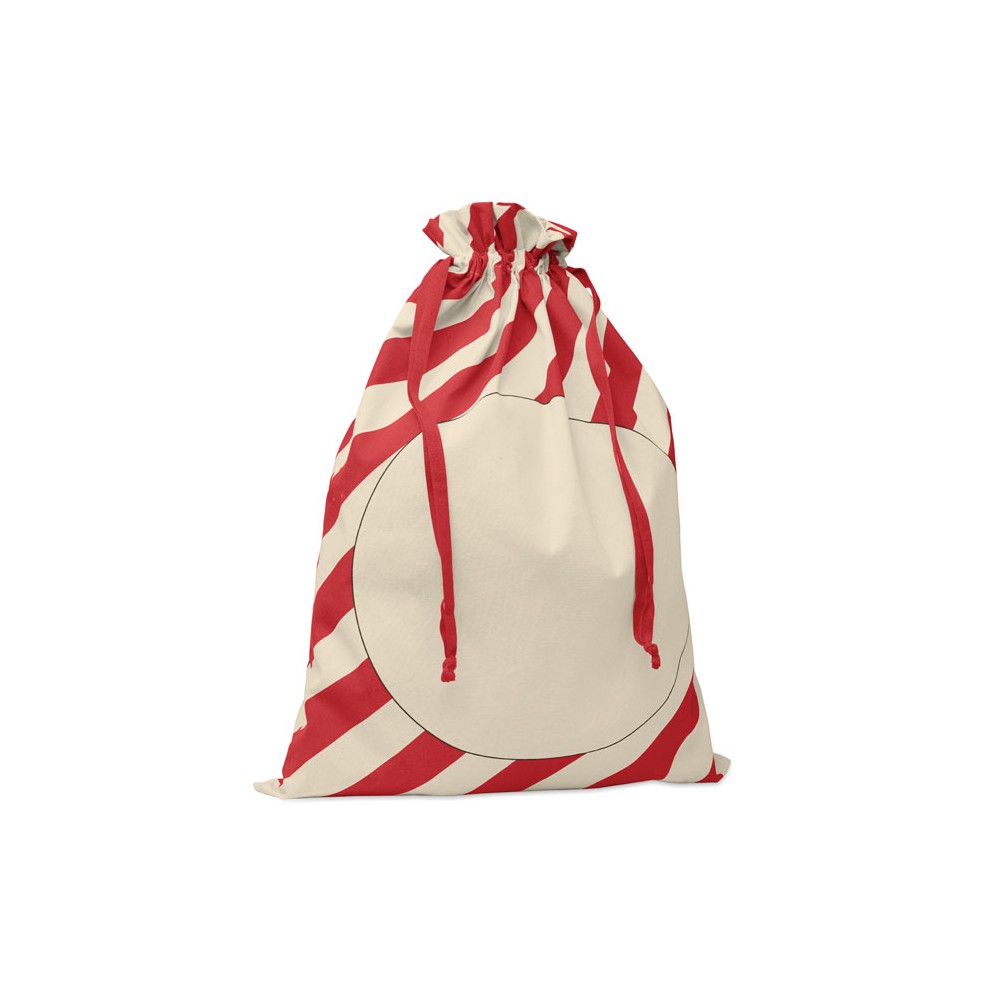 Nagy, húzózsinóros mikulástasak pamutból. Méret kb. 50x70 cm. 180 g/m2 .