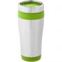 Duplafalú bögre rácsavarható tetővel és elcsúsztatható nyílással. A rozsdamentes acél és a műanyag kombinációja rendkívül erőssé, korrózióállóvá és könnyen tisztíthatóvá teszi a poharat. Nem szivárgásmentes. Szénsavas italokkal is használható. Mosogatógépben nem mosható és mikrohullámú sütőben történő melegítésre nem alkalmas. Űrtartalom: 470 ml.