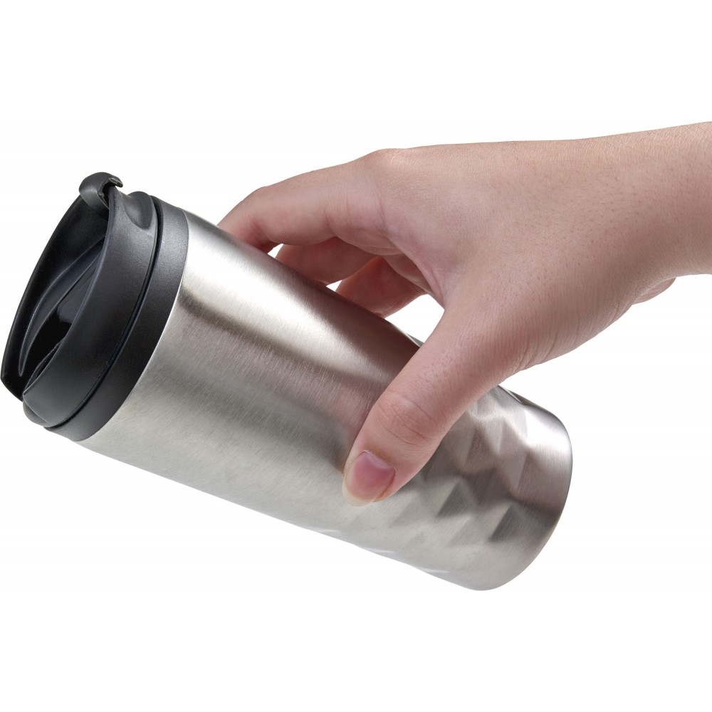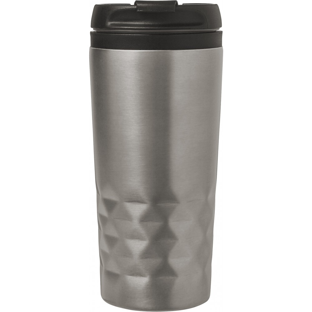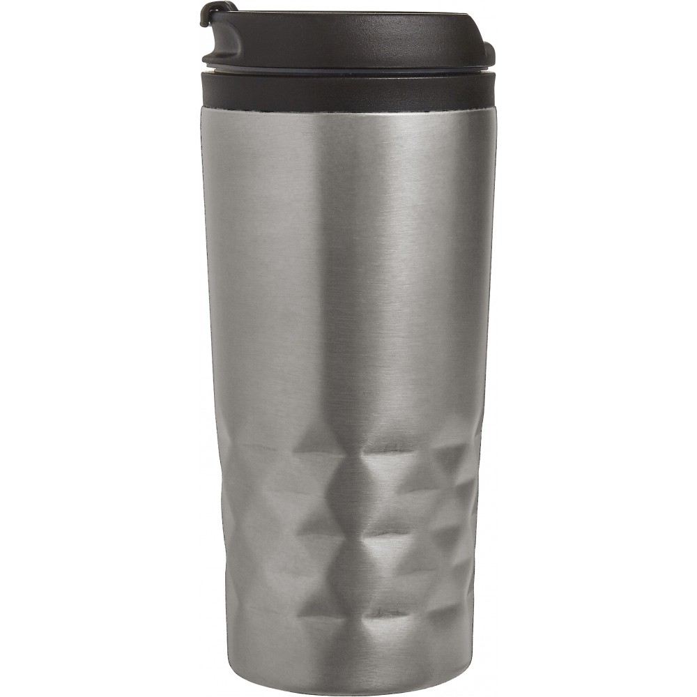 Duplafalú fedeles pohár. 300 ml. Rozsdamentes acél és BPA-mentes műanyag. Nem szivárgásmentes és nem mosogatógépálló termék.