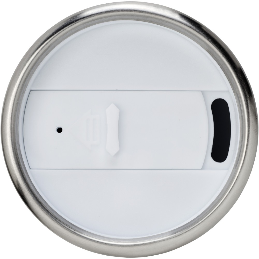 Duplafalú bögre rácsavarható tetővel és elcsúsztatható nyílással. A rozsdamentes acél és a műanyag kombinációja rendkívül erőssé, korrózióállóvá és könnyen tisztíthatóvá teszi a poharat. Nem szivárgásmentes. Szénsavas italokkal is használható. Mosogatógépben nem mosható és mikrohullámú sütőben történő melegítésre nem alkalmas. Űrtartalom: 470 ml.