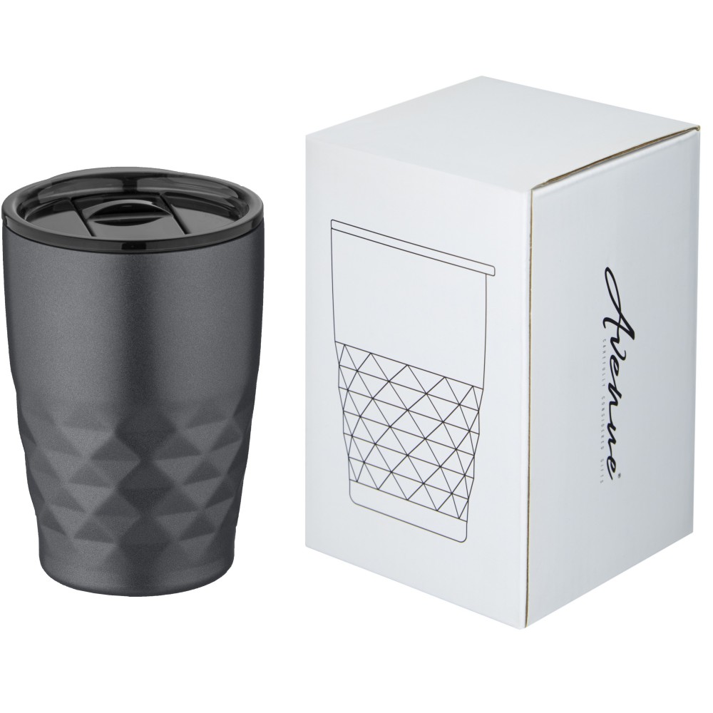 Duplafalú vákumos kialakítás réz szigeteléssel, ami biztosítja a 8 órás melegentartást és a 24 órás hidegentartást. Kialakításának köszönhetően külső párásodás nem fordul elő. A nyomógombos és tolórekeszes fedél kialakítása miatt könnyen fogyasztható belőle bármilyen ital. Könnyű újtatöltést és a kiöntés is biztosított a teljes nyithatóság. 350 ml űrtartalom. Nem szivárgásmentes. Szénsavas italokkal nem használható. Mosogatógépben nem mosható és mikrohullámú sütőben történő melegítésre nem alkalmas. Csomagolása Avenue ajándékdoboz.
