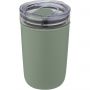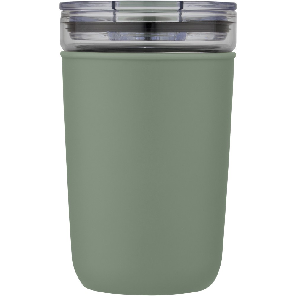 Újrahasznosított műanyag tokkal védett üvegpohár. A pohár 100%-ban tartós boroszilikát üvegből készült, amely megőrzi az ital frissességét, és nem tartalmaz semmilyen káros vegyszert. BPA-mentes, a német élelmiszerbiztonsági törvény (LFGB) szerint tesztelt és jóváhagyott. Ftaláttartalomra tesztelve és jóváhagyva a REACH előírásai szerint. A pohár a legtöbb kávéfőző alá illeszkedik. Nem szivárgásmentes. Szénsavas italokkal nem használható. Mosogatógépben mosható, de mikrohullámú sütőben történő melegítésre nem alkalmas. Űrtartalom: 420 ml. Újrahasznosított karton díszdobozban.