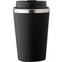 Rozsdamentes acélból és PP-ből készült utazópohár (350 ml). A PP fedél szilikon zárógyűrűvel rendelkezik, tetején lehajtható záróelemmel. Egyedileg csomagolva barna kartondobozban érkezik.