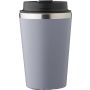 Rozsdamentes acélból és PP-ből készült utazópohár (350 ml). A PP fedél szilikon zárógyűrűvel rendelkezik, tetején lehajtható záróelemmel. Egyedileg csomagolva barna kartondobozban érkezik.