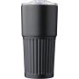 Újrahasznosított rozsdamentes acél útibögre, 450 ml. A belső 304-es, a külső 201-es rozsdamentes acélból készült, bordás markolattal, műanyag, csúszózáras fedéllel. Gravírozott újrahasznosított logó található a bögrén. Csomagolása barna papírdoboz.