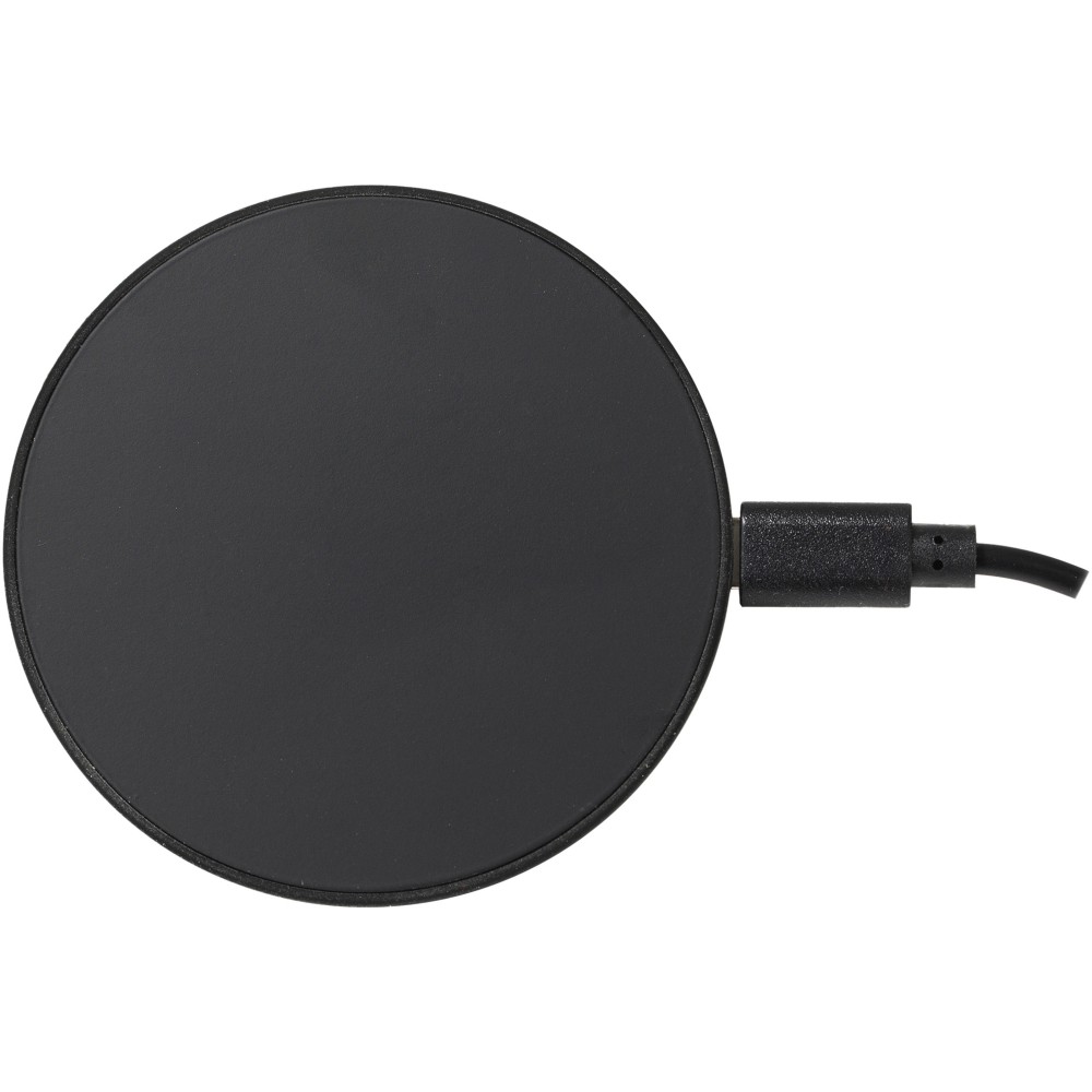 10 W-os vezeték nélküli töltőállomás világító logóval és antibakteriális kezeléssel, újrahasznosított PET-ből készült töltőkábellel. Újrahasznosított papírból készült fekete díszdobozban, mágneses zárószerkezettel szállítjuk. EUROPE EUIPO szabadalom.