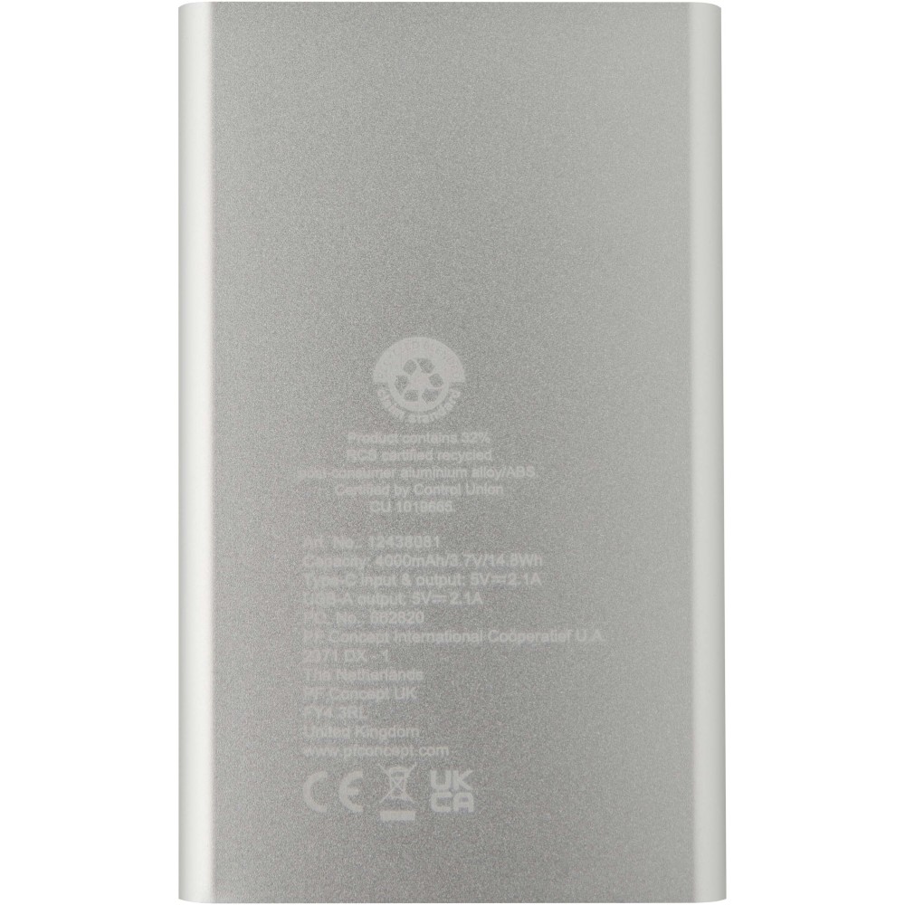 Pep Type-C újrahasznosított alumínium powerbank, 4000 mAh, ezüst
