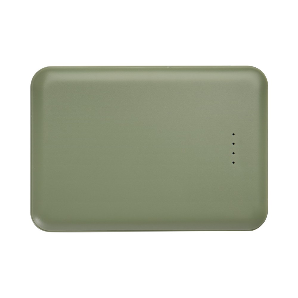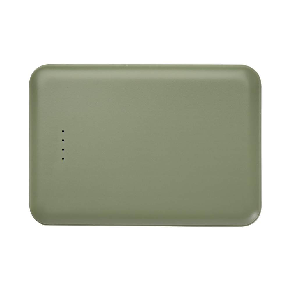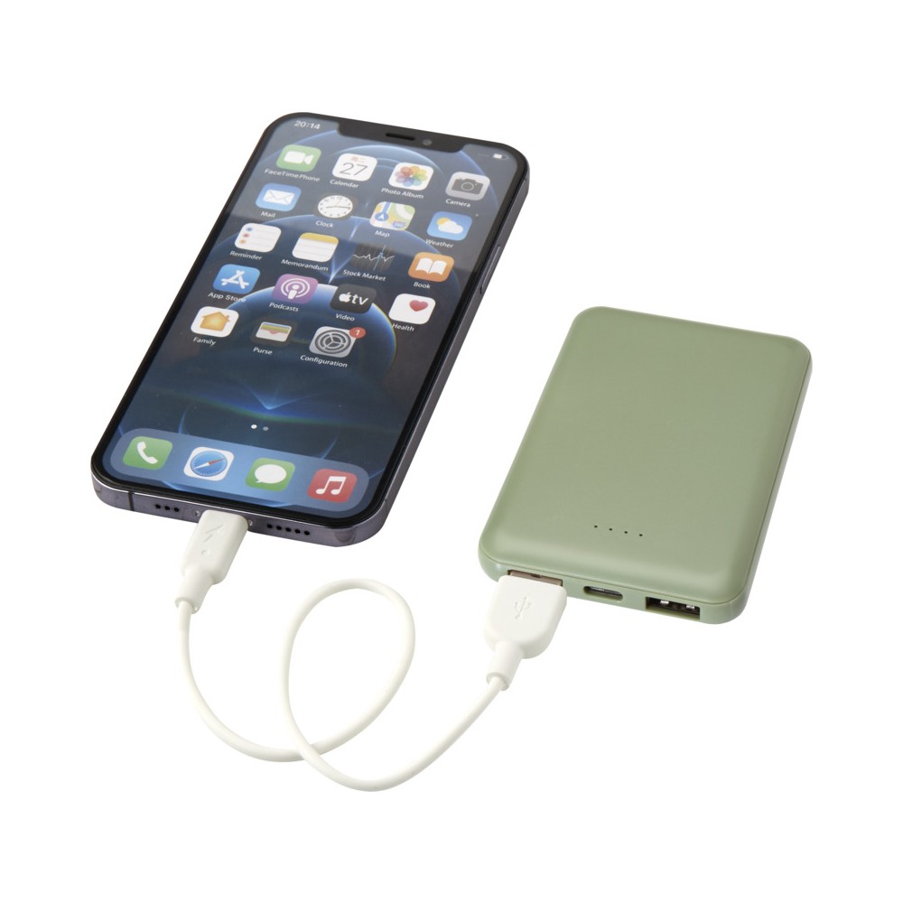 Karcsú és elegáns kialakítású powerbank, Type-C bemeneti/kimeneti porttal és 2 db USB-A porttal, amelyek lehetővé teszik három eszköz egyidejű töltését. A powerbank 5000 mAh kapacitású lítium-polimer akkumulátorral rendelkezik, amely max. 10W teljesítményt biztosít. A powerbank 23%-ban RCS tanúsítvánnyal rendelkező újrahasznosított műanyagból készült. TPE Type-C - USB-A töltőkábellel szállítjuk.