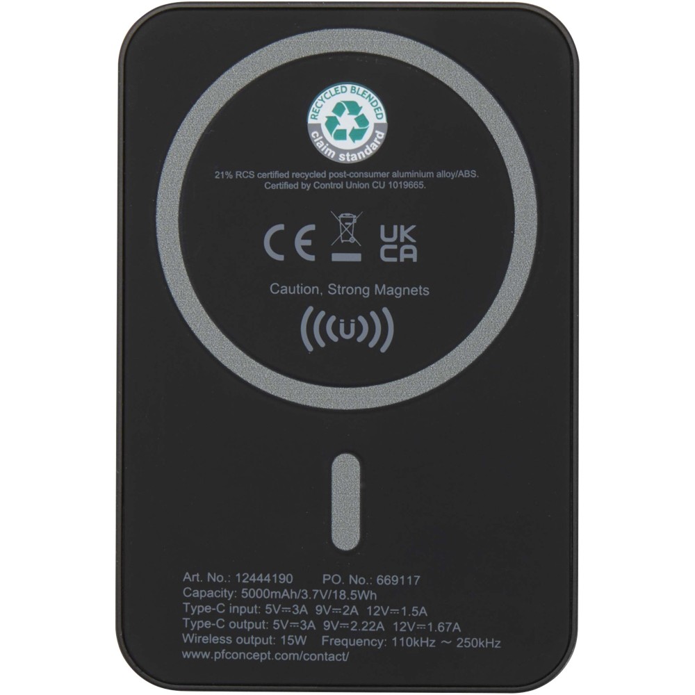Töltsd fel okosabban és gyorsabban eszközeidet az Acrab 5000 mAh powerbank segítségével, amely újrahasznosított műanyagból készült. Akár 15W mágneses vezeték nélküli töltést kínál kompatibilis okostelefonokhoz, beleértve az iPhone 12 és újabb modelleket. Más, mágneses funkció nélküli, vezeték nélküli töltésre alkalmas készülékekhez fémgyűrűs matricát mellékelnek a pontos illeszkedés érdekében. A powerbank támogatja a 20W vezetékes Type-C gyorstöltést is, és egyszerre két eszközt tud tölteni (vezeték nélküli és vezetékes módban), így ideális választás útközben. A LED jelző folyamatosan tájékoztat a töltés és az akkumulátor állapotáról.