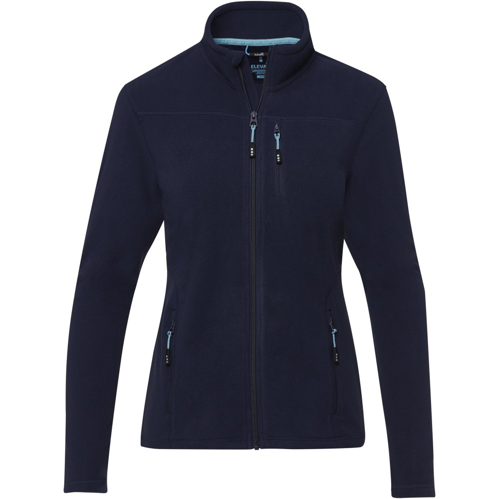 GRS újrahasznosított középső első cipzár. Belső viharvédő burkolattal. Elülső zsebek cipzárral. Mellzseb cipzárral záródik. Könnyen fogható cipzárhúzókák. Márkázott akasztó. Nyakszalag. Félhold betét a nyaknál. Mikropolár 100% GRS tanúsítvánnyal rendelkező újrahasznosított poliészter, 174 g/m2.
