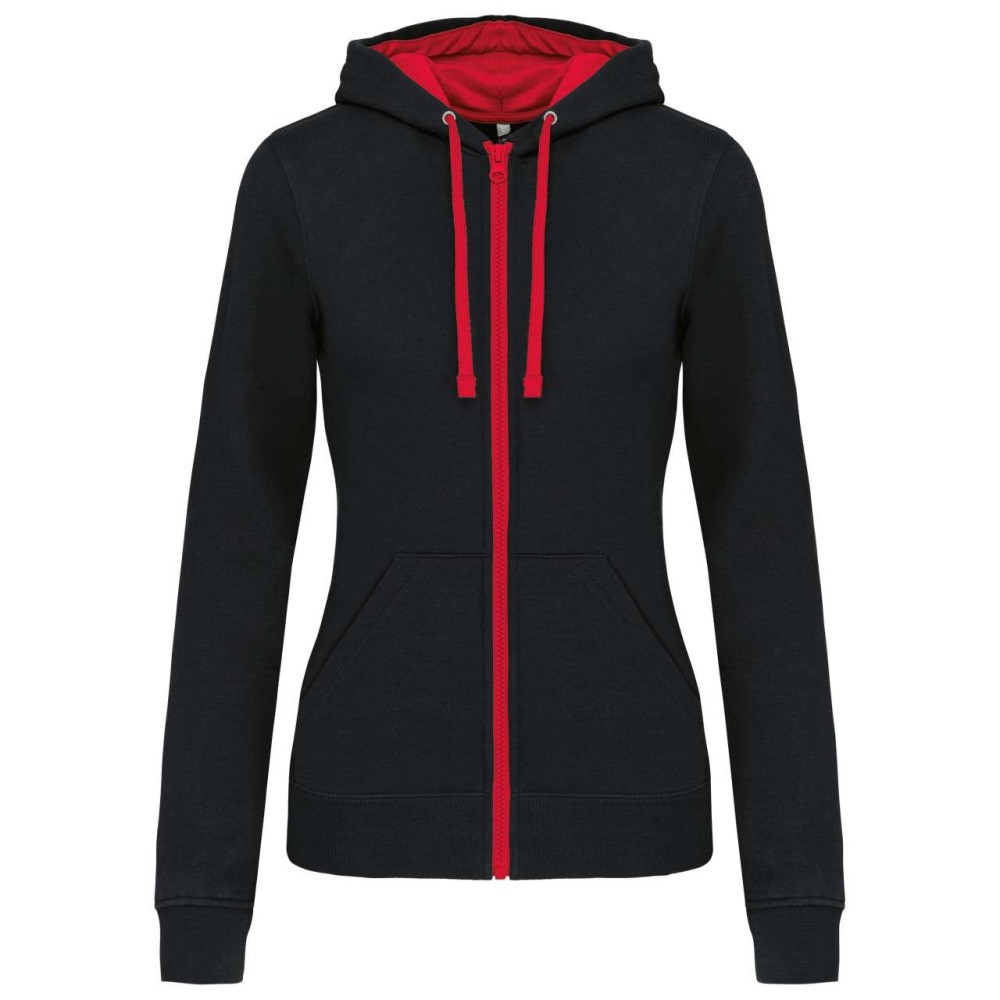 Kariban Contrast női kapucnis pulóver, Black/Red