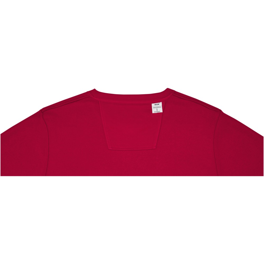 Kereknyakú pulóver belső emblémázási lehetőséggel. Kitéphető címke. Lapos kötésű, bordás nyak-, aljpasszé és kézelő. Belül bolyhos, puha felület. Saját szövetből készült nyakszalag. 50% pamut és 50% poliészter, 240 g / m2.