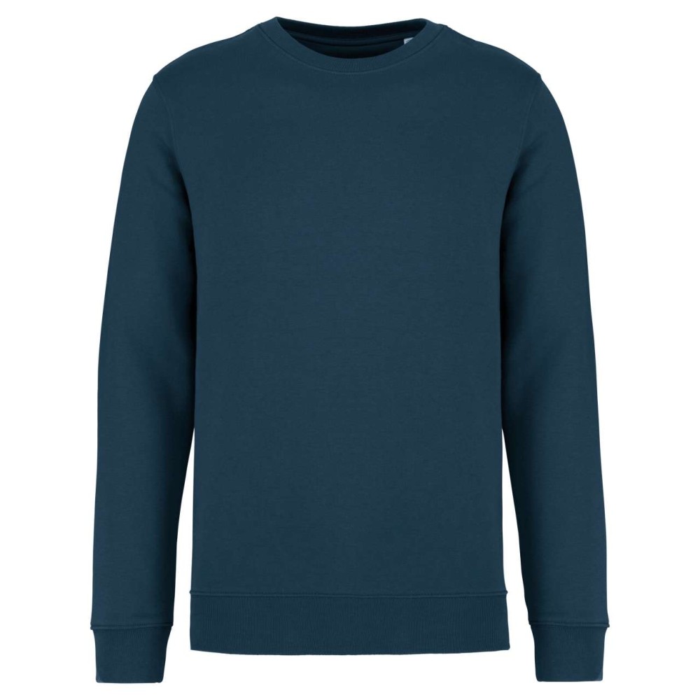 85 % bio, fésült pamutból és 15 % újrahasznosított poliészterből készült. Unisex. Egyenes szabás. LSF (Low Shrinkage Fleece: előzsugorított polár). Kerek nyakkivágás. Félhold alakú. Méretcímke organikus pamut és újrahasznosított poliészter logóval. 1x1 bordás nyakpasszé, alsó szegély és kézelő. Duplaöltés a kézelőn, karöltőben és kézelőn. Egyszeres felülvarrás a nyakkivágáson. Belső szalagozott nyakrész. A nyakrészen nincs márkajelzés, csak méretcímke a könnyebb dekorálás érdekében. A ruhadarabhoz kartonpapírból készült ismertetővel, amely felsorolja a felhasznált környezetbarát anyagokat. OEKO-TEX N CQ1007/7 STANDARD 100 tanúsítvánnyal rendelkezik. IFTH. 350 g/m2.