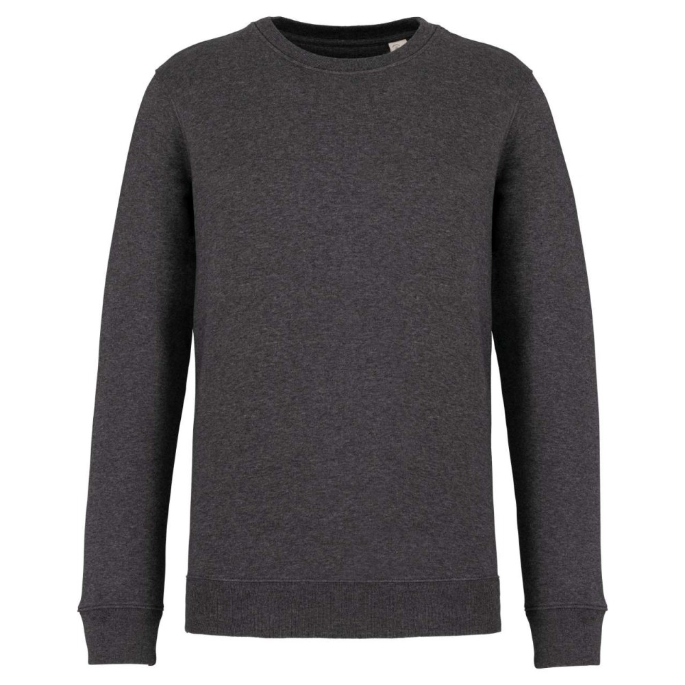 85 % bio, fésült pamutból és 15 % újrahasznosított poliészterből készült. Unisex. Egyenes szabás. LSF (Low Shrinkage Fleece: előzsugorított polár). Kerek nyakkivágás. Félhold alakú. Méretcímke organikus pamut és újrahasznosított poliészter logóval. 1x1 bordás nyakpasszé, alsó szegély és kézelő. Duplaöltés a kézelőn, karöltőben és kézelőn. Egyszeres felülvarrás a nyakkivágáson. Belső szalagozott nyakrész. A nyakrészen nincs márkajelzés, csak méretcímke a könnyebb dekorálás érdekében. A ruhadarabhoz kartonpapírból készült ismertetővel, amely felsorolja a felhasznált környezetbarát anyagokat. OEKO-TEX N CQ1007/7 STANDARD 100 tanúsítvánnyal rendelkezik. IFTH. 350 g/m2.