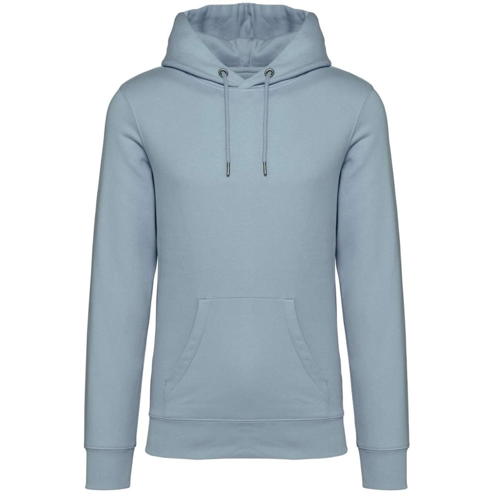 85 % bio, fésült pamutból és 15 % újrahasznosított poliészterből készült. Unisex. Egyenes szabás. Méretcímke organikus pamut és újrahasznosított poliészter logóval. LSF (Low Shrinkage Fleece: előzsugorított polár) kezelés. Kapucni. 1x1 bordás szegély és kézelő. Duplatűzés a kézelőn, a szegélyen és a nyaknál. Szalagozott nyakbelső hátul. Bélelt kapucni, a nyaknyíláson nincs felülvarrás, csak egy megkötés, hogy a húzózsinór a felső részen maradjon. Kerek húzózsinór a kapucnin fém véggel. Kenguru zseb. Nincs márkajelzés a nyakrészen, csak egy méretcímke a könnyű dekorálás érdekében. Karton függőcímkével érkezik, amely felsorolja a termék előállításához felhasznált környezetbarát anyagokat. Organikus pamutfonal. OEKO-TEX N CQ1007/7 STANDARD 100 tanúsítvánnyal rendelkezik. IFTH. 350 g/m2.