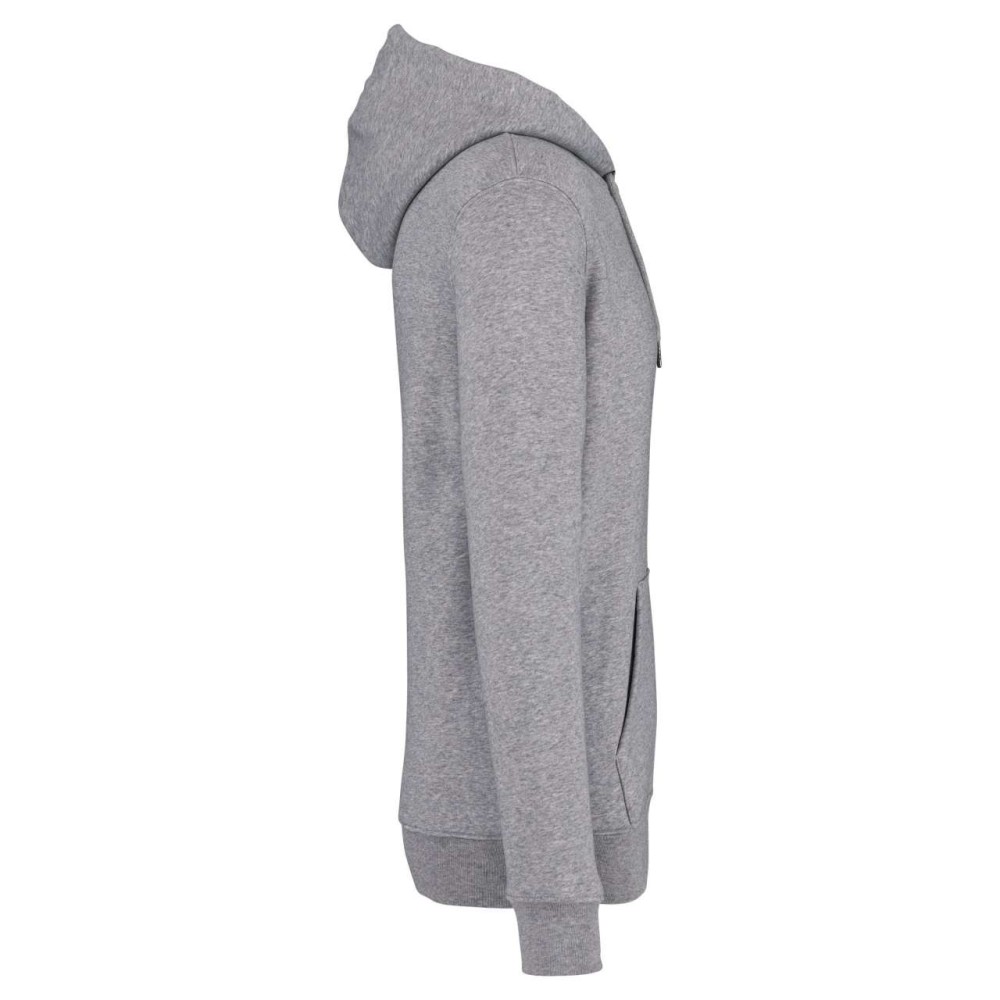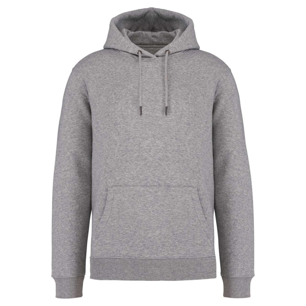 85 % bio, fésült pamutból és 15 % újrahasznosított poliészterből készült. Unisex. Egyenes szabás. Méretcímke organikus pamut és újrahasznosított poliészter logóval. LSF (Low Shrinkage Fleece: előzsugorított polár) kezelés. Kapucni. 1x1 bordás szegély és kézelő. Duplatűzés a kézelőn, a szegélyen és a nyaknál. Szalagozott nyakbelső hátul. Bélelt kapucni, a nyaknyíláson nincs felülvarrás, csak egy megkötés, hogy a húzózsinór a felső részen maradjon. Kerek húzózsinór a kapucnin fém véggel. Kenguru zseb. Nincs márkajelzés a nyakrészen, csak egy méretcímke a könnyű dekorálás érdekében. Karton függőcímkével érkezik, amely felsorolja a termék előállításához felhasznált környezetbarát anyagokat. Organikus pamutfonal. OEKO-TEX N CQ1007/7 STANDARD 100 tanúsítvánnyal rendelkezik. IFTH. 350 g/m2.