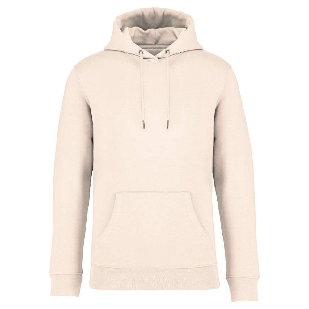 85 % bio, fésült pamutból és 15 % újrahasznosított poliészterből készült. Unisex. Egyenes szabás. Méretcímke organikus pamut és újrahasznosított poliészter logóval. LSF (Low Shrinkage Fleece: előzsugorított polár) kezelés. Kapucni. 1x1 bordás szegély és kézelő. Duplatűzés a kézelőn, a szegélyen és a nyaknál. Szalagozott nyakbelső hátul. Bélelt kapucni, a nyaknyíláson nincs felülvarrás, csak egy megkötés, hogy a húzózsinór a felső részen maradjon. Kerek húzózsinór a kapucnin fém véggel. Kenguru zseb. Nincs márkajelzés a nyakrészen, csak egy méretcímke a könnyű dekorálás érdekében. Karton függőcímkével érkezik, amely felsorolja a termék előállításához felhasznált környezetbarát anyagokat. Organikus pamutfonal. OEKO-TEX N CQ1007/7 STANDARD 100 tanúsítvánnyal rendelkezik. IFTH. 350 g/m2.