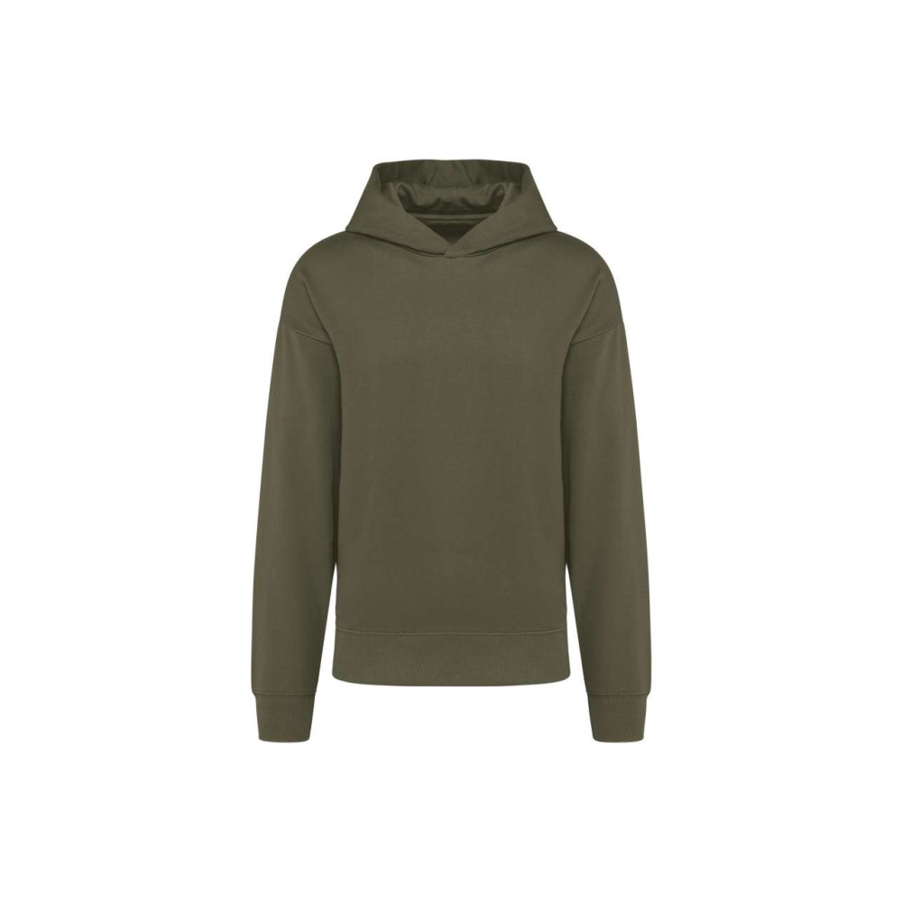 80% cotton / 20% polyester. Oversized fit with dropped shoulders. Brushed fleece. Carded cotton. 1x1 ribbing with a tubular finish on the cuffs and hem. Hidden pocket with invisible zip in the seam on the right side when worn. Cotton hood with double dart. Elastane in the ribbing on the cuffs and at the bottom of the garment to prevent them from going out of shape. Matching twill taped neck. Half-moon finish inside neck. Double overlaid overstitching on cuffs and bottom hem. No brand label on the collar. only a size tag for easy decoration.