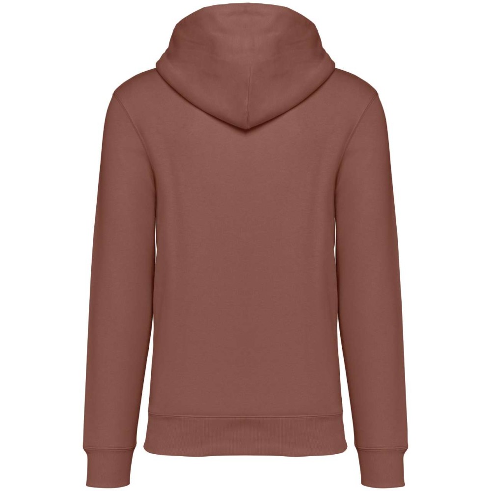 85 % bio, fésült pamutból és 15 % újrahasznosított poliészterből készült. Unisex. Egyenes szabás. Méretcímke organikus pamut és újrahasznosított poliészter logóval. LSF (Low Shrinkage Fleece: előzsugorított polár) kezelés. Kapucni. 1x1 bordás szegély és kézelő. Duplatűzés a kézelőn, a szegélyen és a nyaknál. Szalagozott nyakbelső hátul. Bélelt kapucni, a nyaknyíláson nincs felülvarrás, csak egy megkötés, hogy a húzózsinór a felső részen maradjon. Kerek húzózsinór a kapucnin fém véggel. Kenguru zseb. Nincs márkajelzés a nyakrészen, csak egy méretcímke a könnyű dekorálás érdekében. Karton függőcímkével érkezik, amely felsorolja a termék előállításához felhasznált környezetbarát anyagokat. Organikus pamutfonal. OEKO-TEX N CQ1007/7 STANDARD 100 tanúsítvánnyal rendelkezik. IFTH. 350 g/m2.
