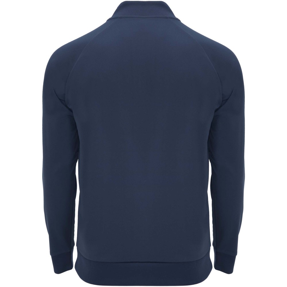 Technikai anyag. Raglán ujjak. Belül bolyhos anyag. Negyedcipzár azonos színű megerősített, fedett öltésekkel. Bordázott nyak-, ujj- és aljpasszé. Eltávolítható címke.