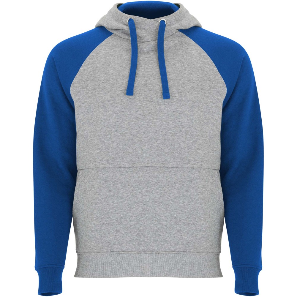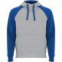 Roly Badet uniszex kapucnis pulóver, Heather grey, Royal blue