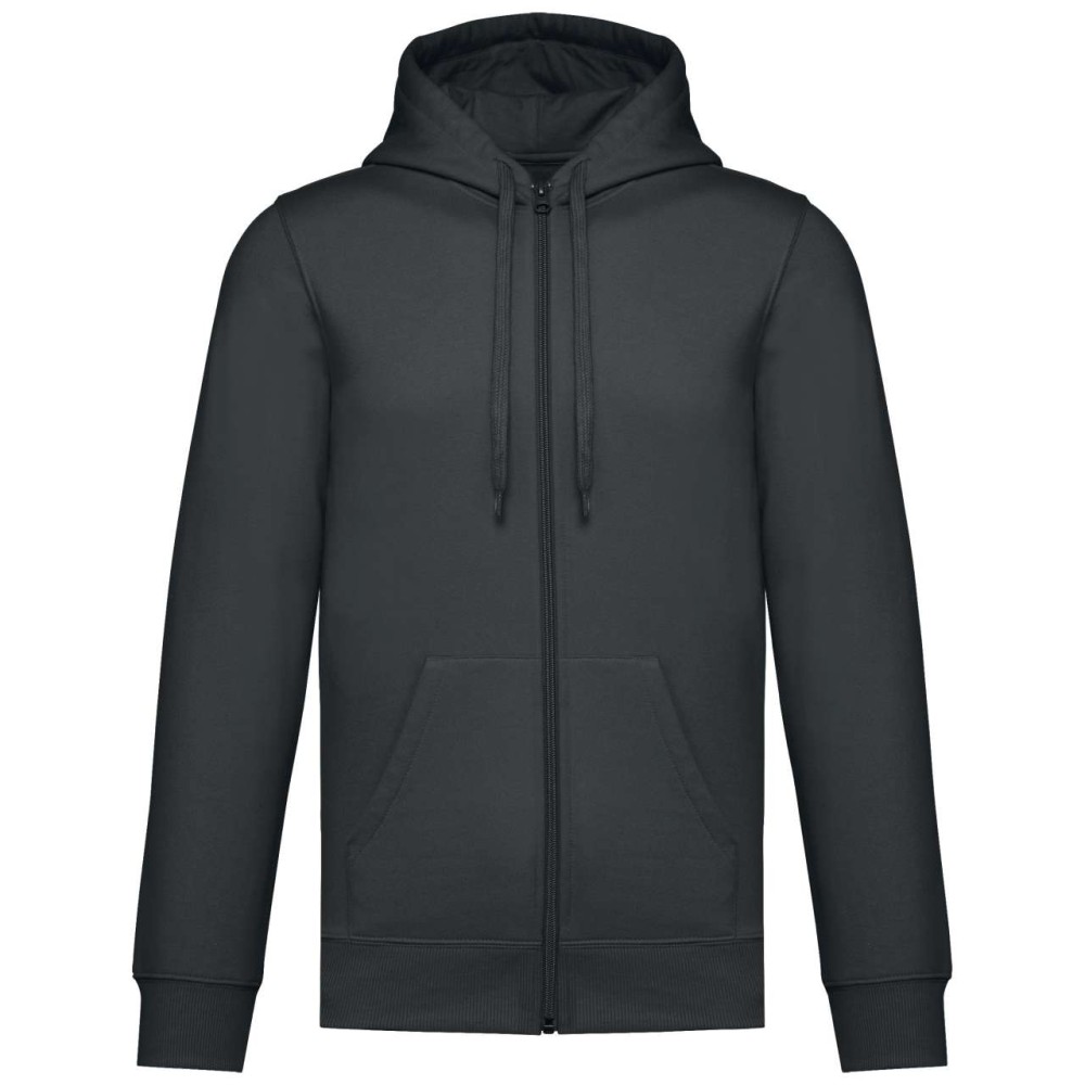 50% gyűrűs fonású pamut / 50% újrahasznosított poliészter, fésült pamut. Egyenes szabású, vágott és varrott. 1x1 bordás kötés a nyakkivágás, a mandzsetta és az alsó szegély jobb megjelenése érdekében. Kenguruzseb, nylon cipzár. Policotton dzsörzé bélésű kapucni lapos húzózsinórral. Színben illeszkedő dzsörzé szalagos belső a nyakkivágásnál. Csak méretcímke márkajelzés nélkül.