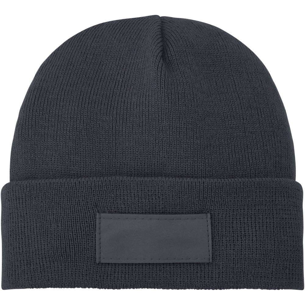 1x1-es kötésű 100% akril sapka 100% poliészter emblémázható címkével. A címke mérete: 75 x 30 mm.
