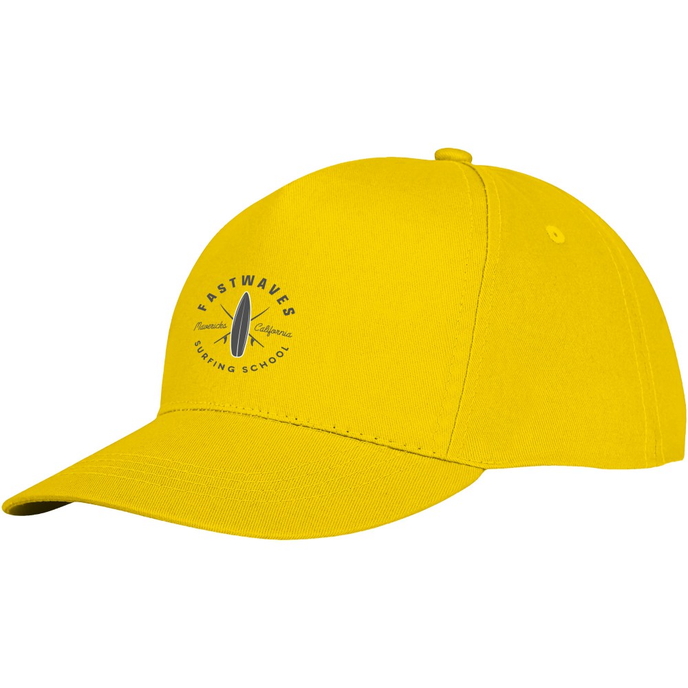 Hades 5 paneles baseballsapka hímzett szellőzőnyílásokkal, tépőzárral. Strukturált elsőpanel a könnyű emblémázhatóság érdekében. 100% twill pamut. 175 g/m2. 58 cm-es fejkörméretű.