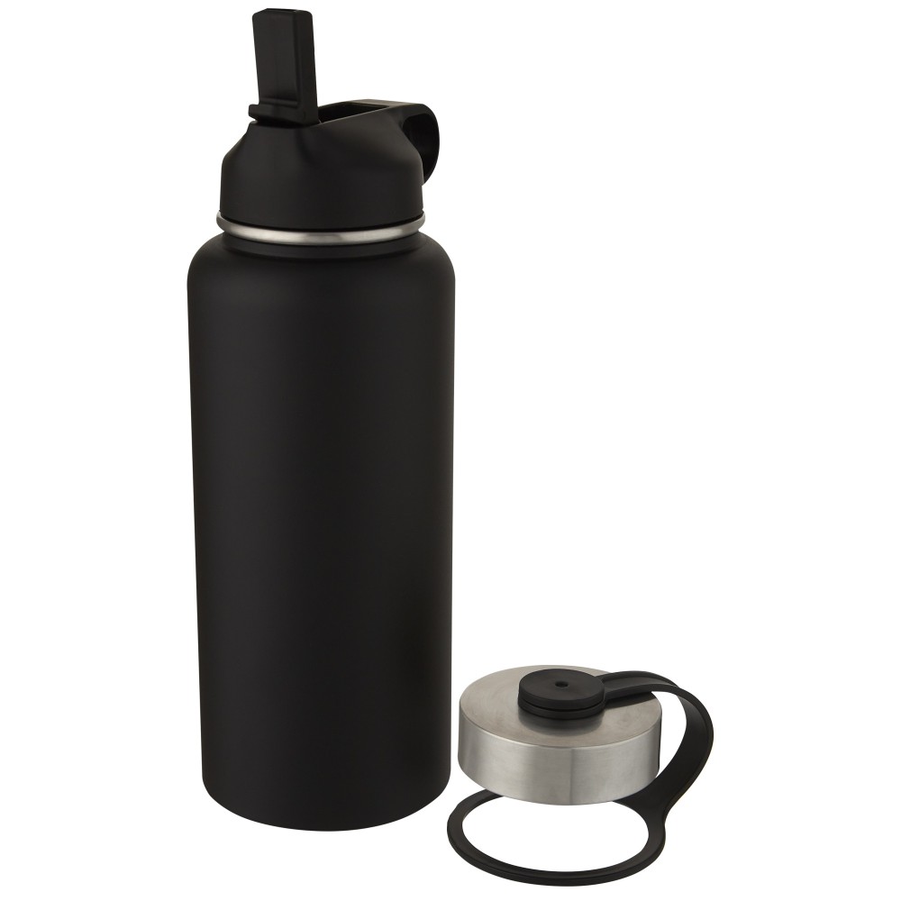 Kettő az egyben duplafalú, rozsdamentes acél sportpalack réz vákuumszigeteléssel, 2 fedéllel: egy szívószálas fedél és egy felcsavarható fedél hurokkal. A szigetelt 18/8-as rozsdamentes acél konstrukció megakadályozza a páralecsapódást a palack külső oldalán, a divatos matt bevonat pedig extra tartóssá teszi. Szélesen nyíló száj a könnyű feltöltéshez, kiöntéshez és tisztításhoz. BPA-mentes, a német élelmiszerbiztonsági törvény (LFGB) szerint tesztelt és jóváhagyott. Ftaláttartalomra tesztelve és jóváhagyva a REACH előírásai szerint. Jégkockákhoz tökéletes. Szivárgásmentes. Szénsavas italokkal nem használható. Mosogatógépben nem mosható és mikrohullámú sütőben történő melegítésre nem alkalmas. Nagy űrtartalmú palack: 1L. Újrahasznosított karton díszdobozban.