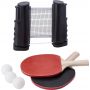 Asztalitenisz-készlet. Tartalma: 2 pingpongütő, egy kihúzható háló, 3 pingponglabda. RPET tasakba csomagolva. ABS műanyag.