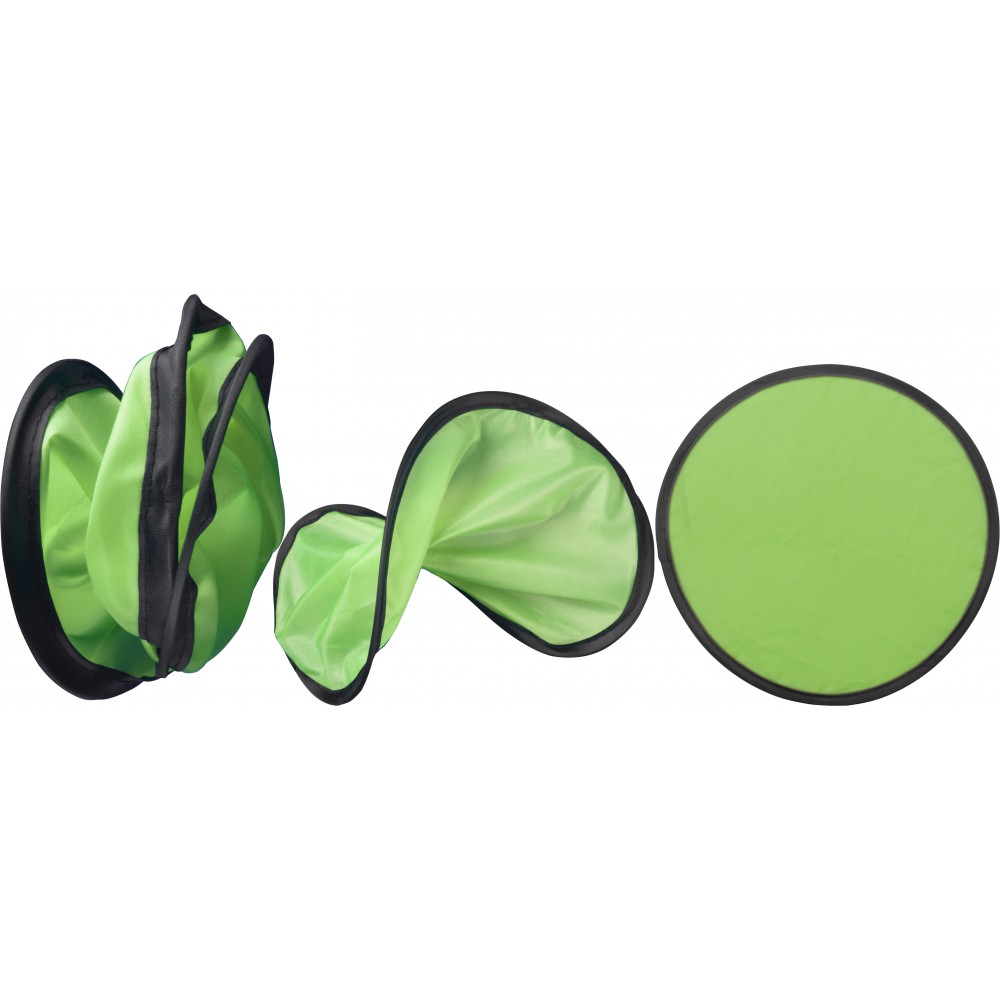 Összehajtható frizbi tasakkal. Kinyitva : d: 25 cm