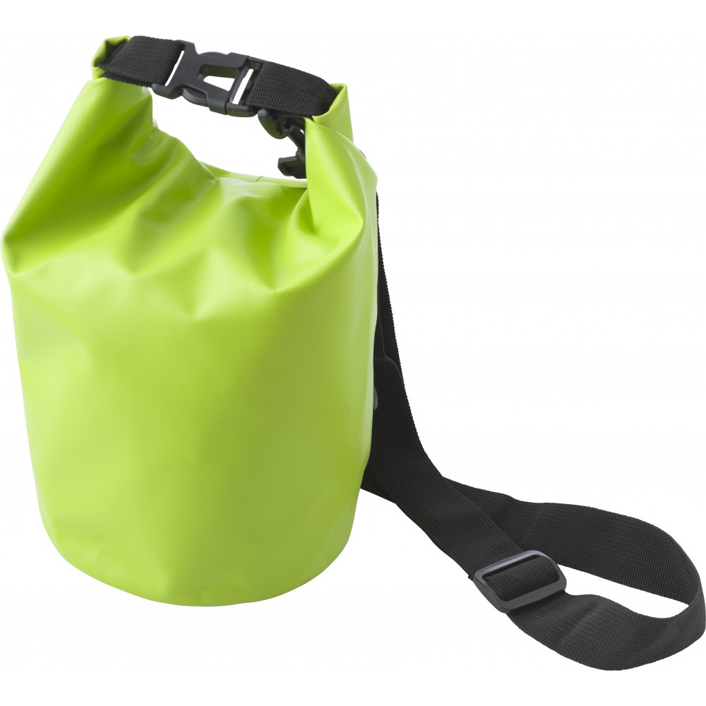 Vízálló táska. Levegővel kell feltölteni, hogy a vízben lebeghessen. Vállpánt nélkül.