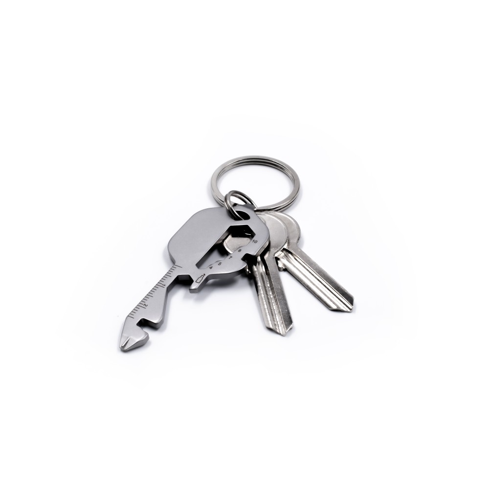 A strapabíró 2CR13 martenzites rozsdamentes acélból készült Kee Shape multifunkciós szerszám kerékpáros célokra is. 12 alapvető szerszámot egyesít egy kompakt, kulcs alakú kialakításban, így bármilyen kulcstartóhoz könnyen rögzíthető. Tartalmaz egy bicikli küllős kulcsot, villáskulcsokat (4-10 mm-es méretek), sörnyitót, Phillips és lapos csavarhúzókat, huzalhajlítót, valamint centiméteres és hüvelykes mérőt. Elegáns fekete dobozba csomagolva kényelmes, minden egyben eszköz a mindennapi szükségletekhez.