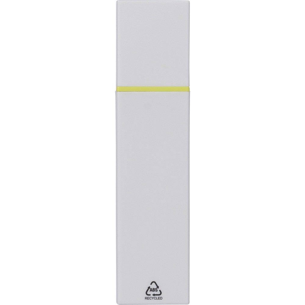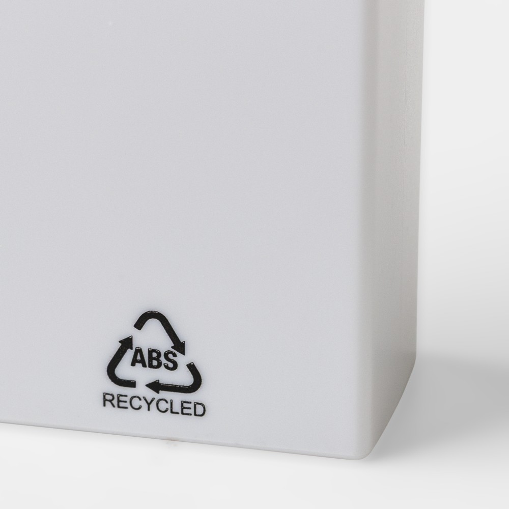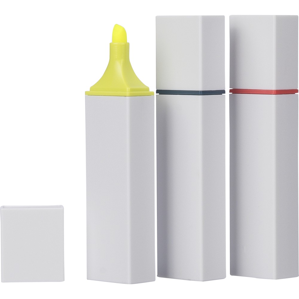 Újrahasznosított ABS-ből készült szövegkiemelő fehér testtel és színes díszítéssel. Klikkes záródással rendelkezik, 2 évig véd a kiszáradás ellen. A terméken Recycled ABS alapanyagra utaló logó található.