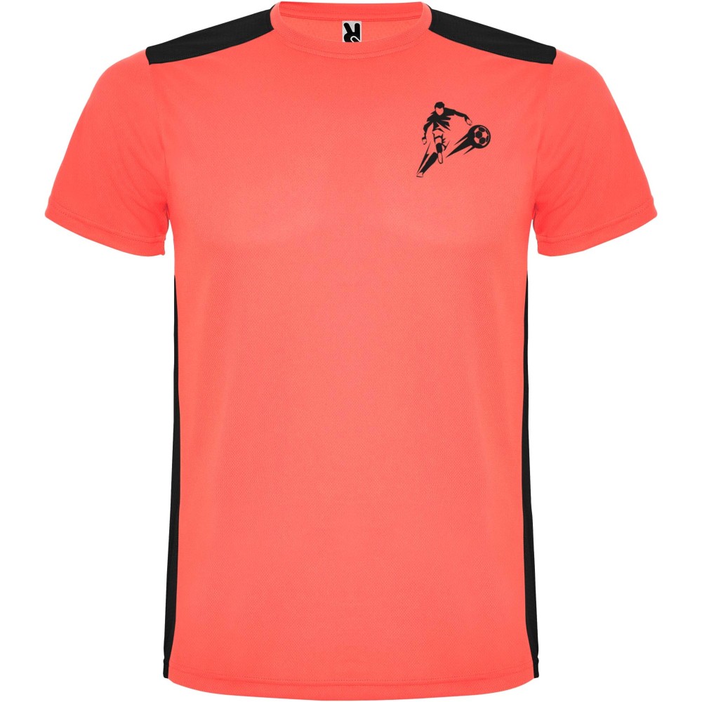 Roly Detroit rövid ujjú gyerek sportpóló, fluor coral, solid black