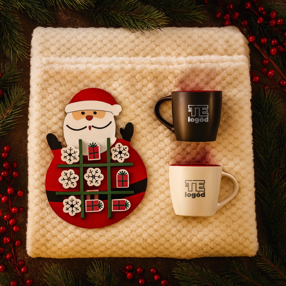 A fehér, északi tájak hangulatát idézi ez az ajándékcsomag, amely játékos és meghitt elemekkel teszi különlegessé az ünnepet, mert párban szép az élet. A csomag tartalma: karácsonyi amőba játék (CX1568-05), Aztex kerámiabögre (10047702), Riviera kerámiabögre (10047602), polártakaró waffle mintával (976631-357). Csomagolási lehetőségekről érdeklődj ügyfélmenedzserednél! A kép illusztráció. A kínálatunkban szereplő termékek igény szerint kombinálhatók. A csomagot rendelés esetén állítjuk össze. Várható szállítási határidő: kb. 2 hét. A termékek emblémázását és csomagolását nem tartalmazza a csomag ára. Csomagoló anyagok