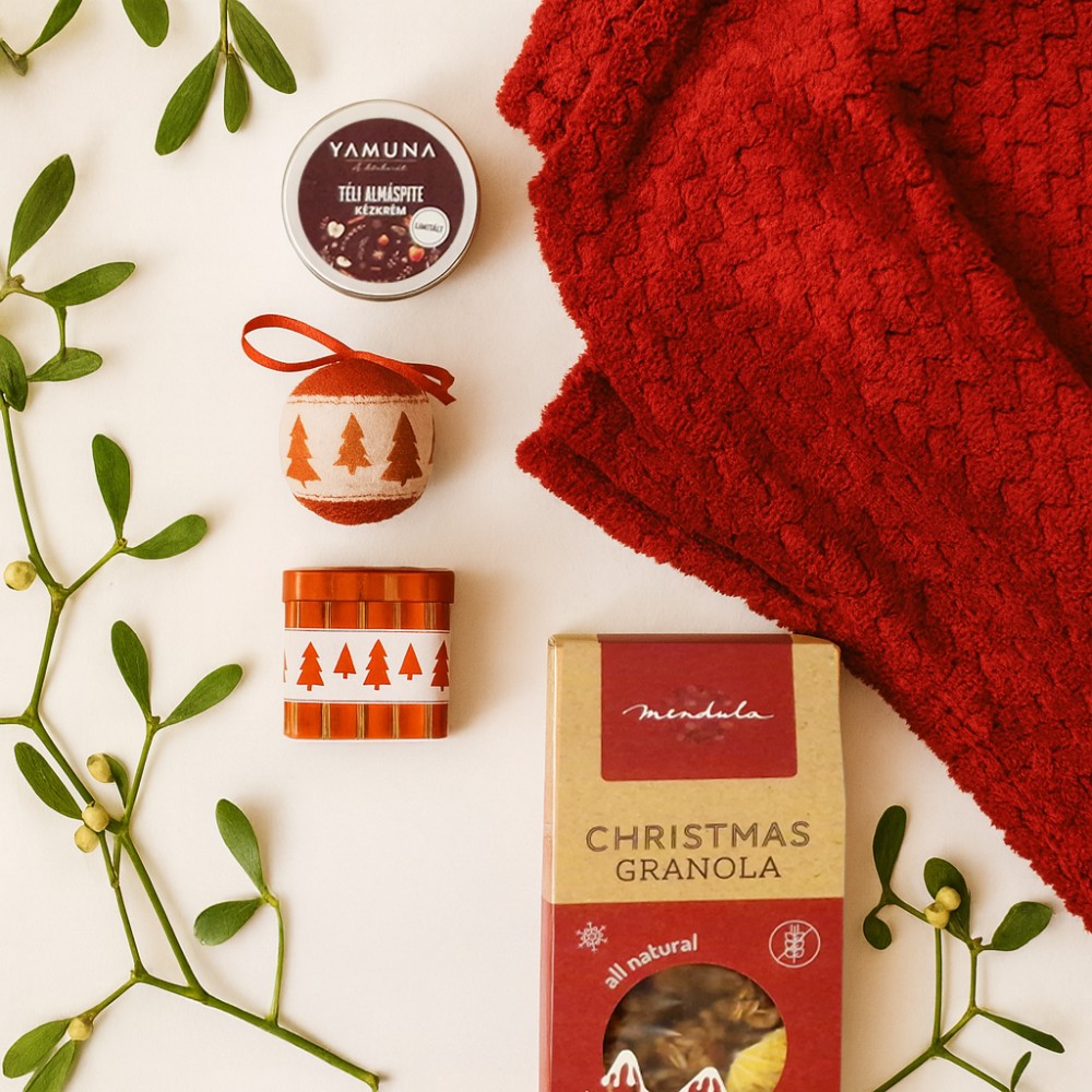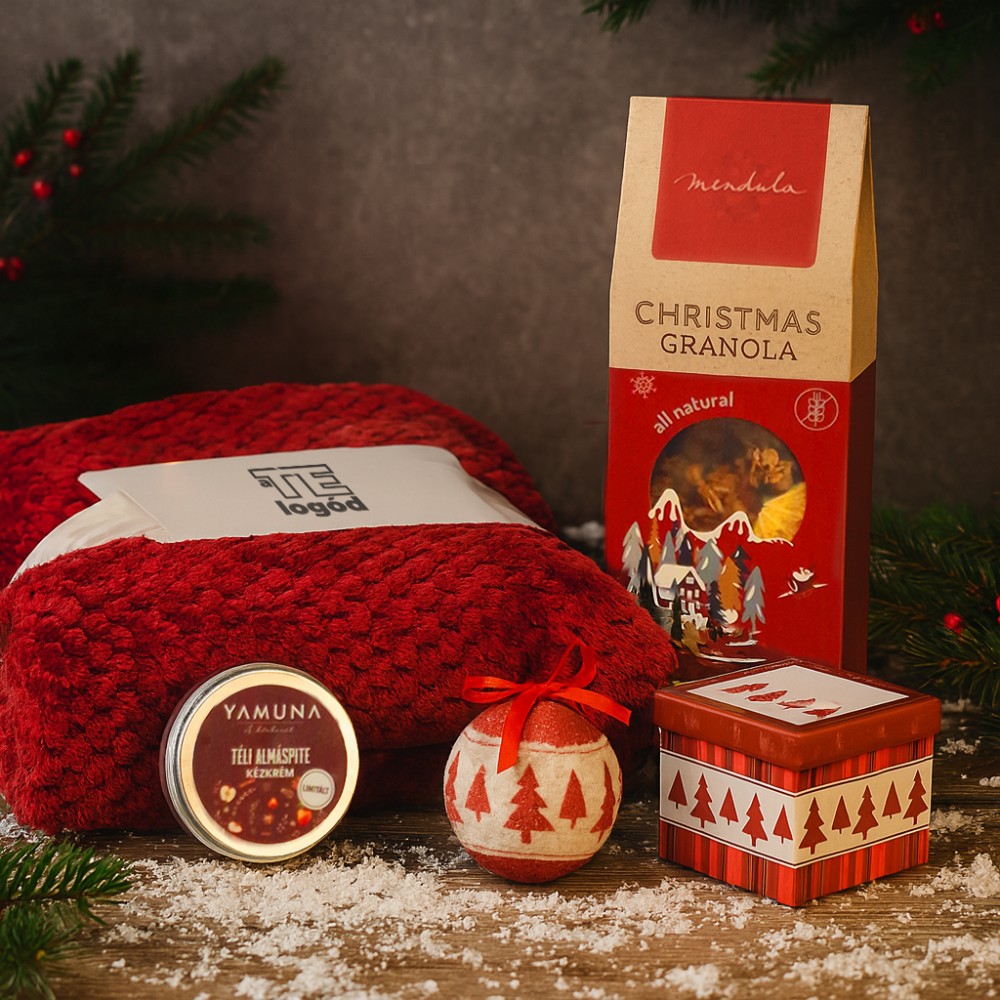 Ez a válogatás gazdag, ünnepi hangulatot áraszt, ahol a kényeztető apróságok és az intenzív ízek dominálnak. A csomag tartalma: karácsonyi granola, 300 g (G20511), kézkrém, 50 g (G20426), gömb karácsonyfadísz (CX1437-99), polártakaró waffle mintával (976631-10). Csomagolási lehetőségekről érdeklődj ügyfélmenedzserednél! A kép illusztráció. A kínálatunkban szereplő termékek igény szerint kombinálhatók. A csomagot rendelés esetén állítjuk össze. Várható szállítási határidő: kb. 2 hét. A termékek emblémázását és csomagolását nem tartalmazza a csomag ára. A csomagban szereplő élelmiszer és krém csak csomag részeként rendelhető.