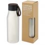 Réz vákuumszigetelt rozsdamentes acél palack klasszikus és elegáns dizájnnal. PU bőr szíjjal és részlettel a fedélen. Ez ideálissá teszi a lézergravírozáshoz, amely a logót ezüst színben emeli ki, gyönyörű vizuális hatást hozva létre. A 18/8-as rozsdamentes acél duplafalú réz vákuumszigetelésével az italok több órán keresztül melegek vagy hidegek maradnak. A német élelmiszerbiztonsági jogszabályok (LFGB) szerint tesztelték és jóváhagyták, és a REACH előírásai szerint tesztelték a ftaláttartalmat. Szivárgásmentes. Szénsavas italokkal nem használható. Mosogatógépben nem mosható és mikrohullámú sütőben történő melegítésre nem alkalmas. Űrtartalom: 500 ml. Újrahasznosított karton díszdobozban.