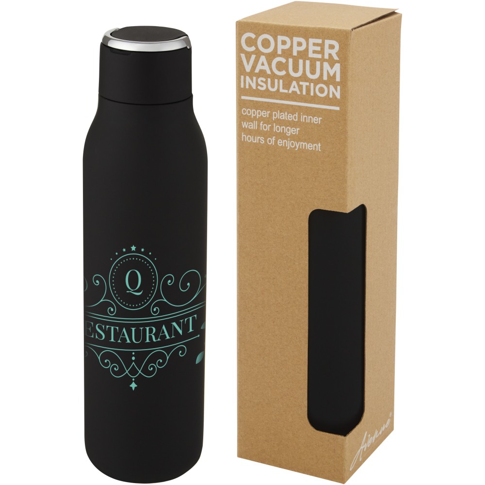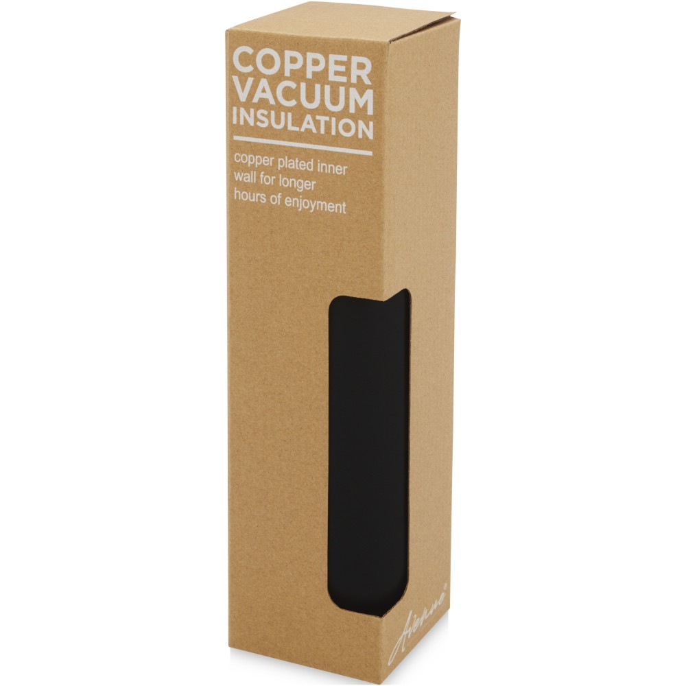 A Marka palack rozsdamentes acél vákuumkonstrukcióval és rézszigeteléssel rendelkezik, amely több órán keresztül melegen vagy hidegen tartja az italokat. A szigetelt 18/8-as rozsdamentes acél konstrukció megakadályozza a páralecsapódást a palack külső oldalán, a divatos porszórt felület pedig extra tartóssá teszi. Felcsavarható fedéllel és tartós, cinkötvözetből készült fogóval is rendelkezik. BPA-mentes, a német élelmiszerbiztonsági törvény (LFGB) szerint tesztelt és jóváhagyott. Ftaláttartalomra tesztelve és jóváhagyva a REACH előírásai szerint. A legtöbb szabványos autós pohártartóba illeszkedik. Szivárgásmentes. Szénsavas italokkal nem használható. Mosogatógépben nem mosható és mikrohullámú sütőben történő melegítésre nem alkalmas. Űrtartalom: 600 ml. Újrahasznosított karton díszdobozban.