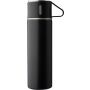 Rozsdamentes acél (s/s304) duplafalú palackkészlet (420 ml), két csészével (150 ml), egy barna kartondobozba csomagolva.