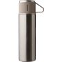 Rozsdamentes acél (s/s304) duplafalú palackkészlet (420 ml), két csészével (150 ml), egy barna kartondobozba csomagolva.