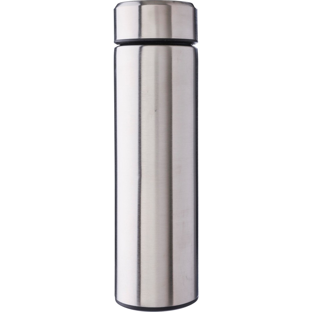 Duplafalú palack beépített, kivehető teaszűrővel. A belső rész 304-es rozsdamentes acélból, a külső rész 201-es rozsdamentes acélból készült. Egyenként barna kartondobozba csomagolva. Űrtartalom: 425 ml.