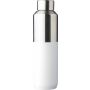 Újrahasznosított rozsdamentes acél palack, 600 ml. Duplafalú, vákuumszigetelt, a belső 304-es, a külső pedig 201-es rozsdamentes acélból készült. Kupakja PP, 201-es rozsdamentes acél külsővel. Elején gravírozott újrahasznosított logó található. Csomagolása barna papírdoboz.