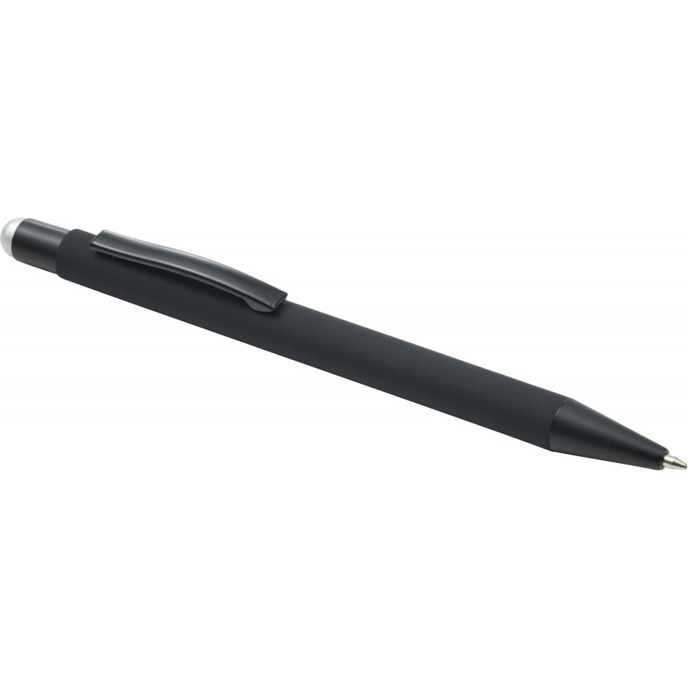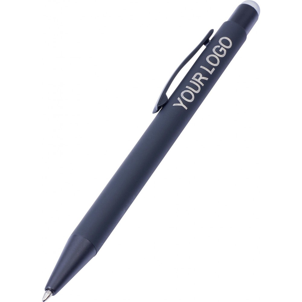 Golyóstoll színes érintővel, kék tollbetéttel és színes belső felülettel. ABS műanyag és alumínium.