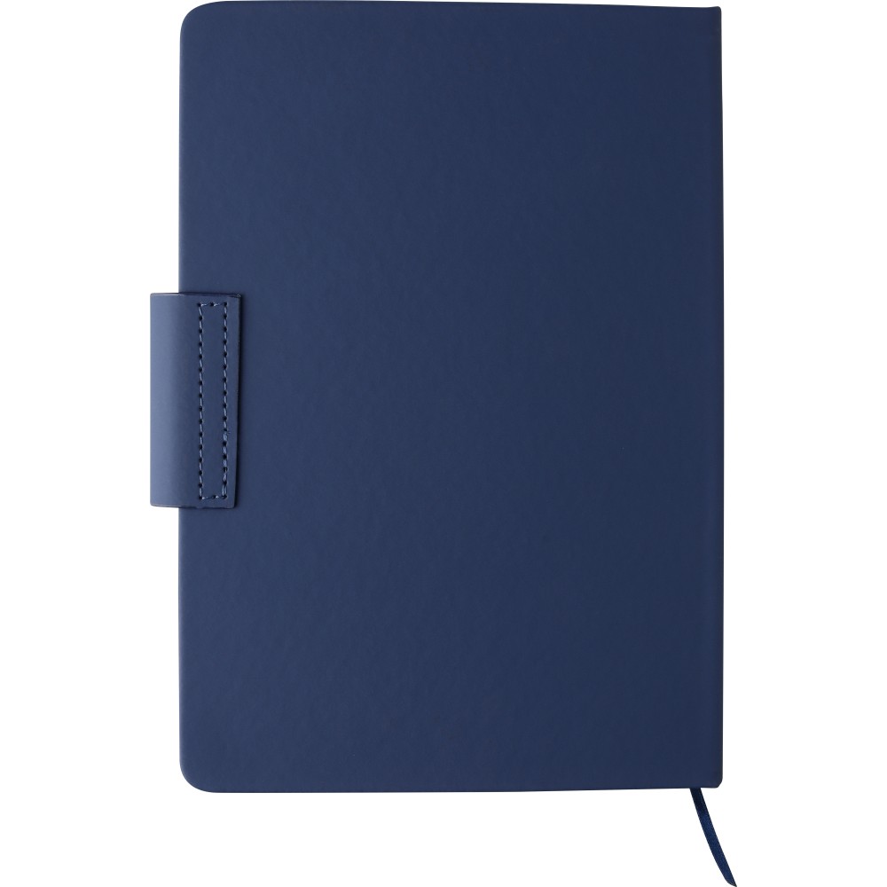 Karton ajándékkészlet. Tartalma: újrahasznosított alumínium csavaros golyóstoll kék tintával és újrahasznosított PU jegyzetfüzet. A jegyzetfüzet 80 lapos 70 g/m2-es vonalas papírral, és szalagos könyvjelzőt és fém mágneses zárat tartalmaz fegyveracél gravírozott lemezzel. Mindkét termék újrahasznosított logóval van ellátva: dombornyomva a jegyzetfüzeten és gravírozva a tollon.