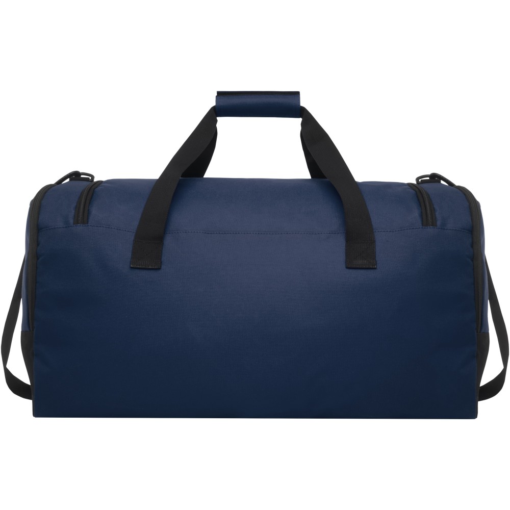 Erős táska 100% -ban újrahasznosított műanyagból, amellyel hozzájárul a műanyag hulladék csökkentéséhez. Nagyméretű fő rekesz és első cipzáras zseb, párnázott vállpánt és párnázott fogantyú. Körülbelül 27 műanyagpalack újrahasznosításával készült. 600D poliészter.