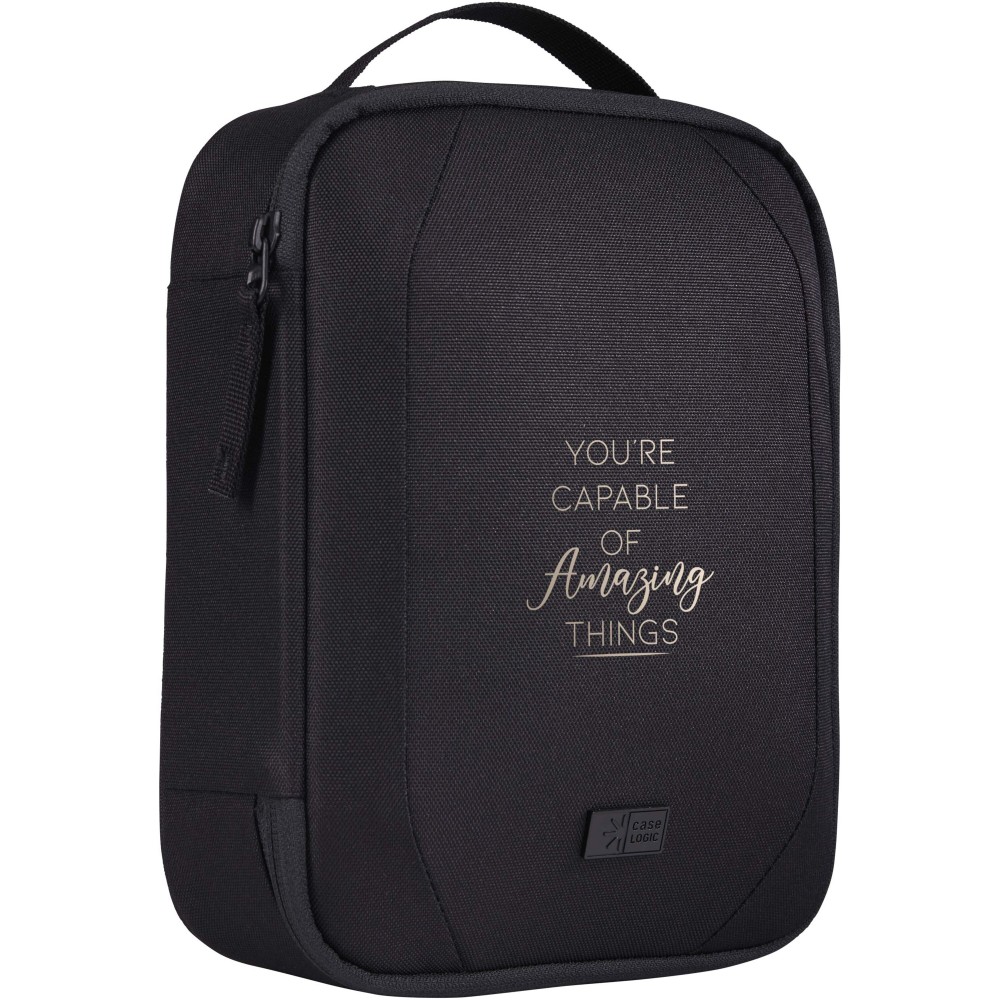 A Case Logic Invigo tartozéktáskában van hely a kábelek, fülhallgatók, adapterek és egyéb személyes tárgyak számára. Nagyszerűen használható egy nagyobb táskában vagy önmagában. Ez a táska 100%-ban újrahasznosított 600D poliészter külsővel és 150D poliészter béléssel készült. Tolltartó zsebbel, cipzáras zsebbel, egy nagy csúszózsebbel és külön tárolórekeszekkel rendelkezik a nagyobb tárgyak, például fejhallgatók számára.